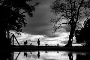 People gather beneath a wide sky, connected yet apart. In the quiet distance, presence becomes its own form of company.